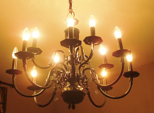 It's difficult getting a pic of it at nite just minutes after hubby has wired and hung it. But here she is!