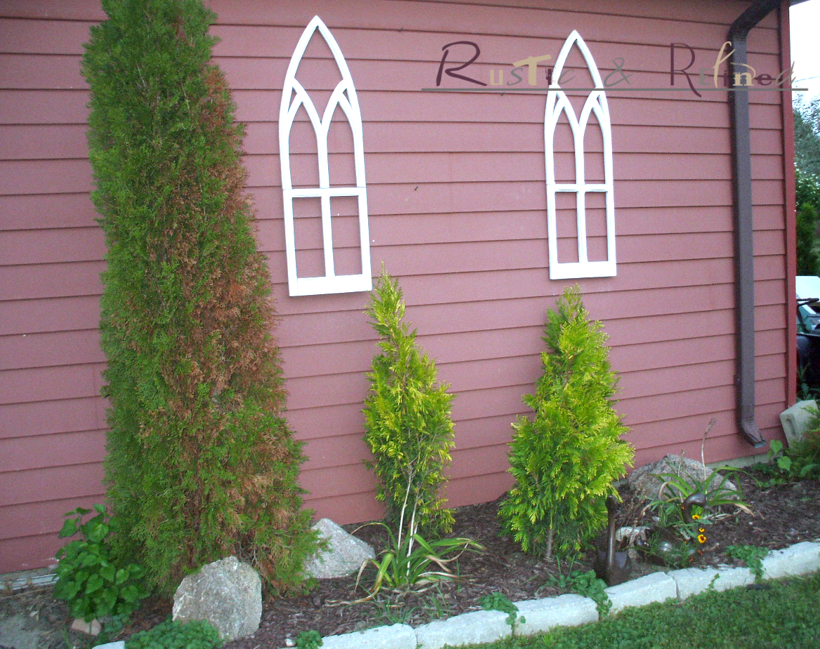 This is the side of our garage in the backyard. I like to refer to this as the Evergreen Year. They were cheap cheap cheap and one of the garden centers I used to frequent had amazing email coupons. I bought two 7' tall arborvitae and 8 smaller ones for $120.